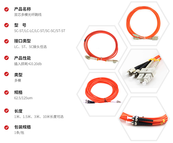 光纖跳線長(zhǎng)度不同,通常為1m、5m、10m、20m、30m、50m。應(yīng)根據(jù)要連接的設(shè)備之間的距離選擇適當(dāng)?shù)碾娎|長(zhǎng)度。